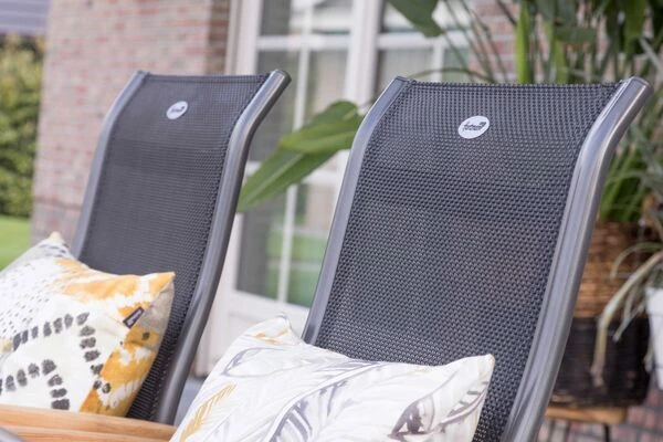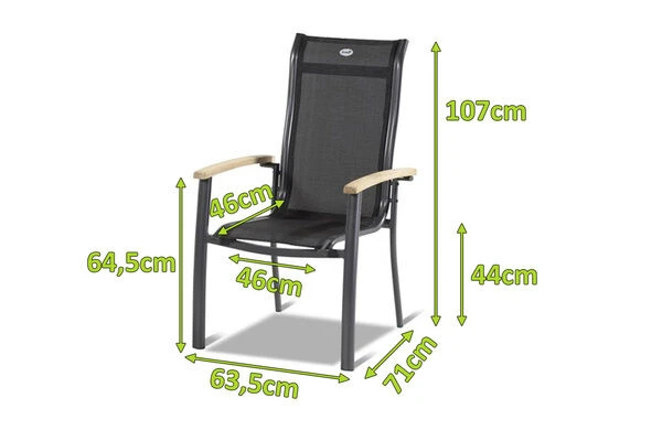 HARTMAN Alice Stapelsessel 4er-Set, xerix/schwarz, Alu/4×4 Textilen, mit FSC Teak-Armlehnen