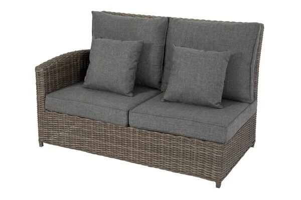 Diese gemütliche Loungegruppe von OUTFLEXX® bietet bequem bis zu sechs Personen Platz. Die Sitzhöhe von ca. 30 cm (ohne Kissen) macht die Lounge zum Allround Talent – hier können Sie gemütlich in der Sonne liegen, aber auch ganz bequem ein leckeres Abendessen zu sich nehmen. Das Set besteht aus zwei 2er Sofas (ca. 137 x 82,5 x 90 cm), einem Eckelement (ca. 82,5 x 82,5 x 90 cm) und einem einzelnen Mittelelement (ca. 65 x 82,5 x 90 cm), so können Sie die Schenkellänge flexibel wählen und die Lounge bequem an Ihre Gegebenheiten zuhause anpassen.