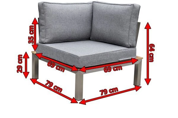 OUTFLEXX Eckelement, Silber/grau, Edelstahl/FSC-Teakholz/Textil, 79 X 79 X 64 Cm