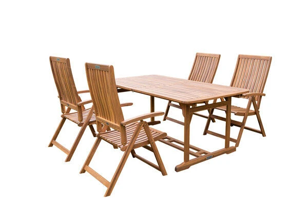 OUTFLEXX Sitzgruppe, Natur, Akazie, Ausziehtisch 150/200 X 90 Cm, 4 Multipositionssessel